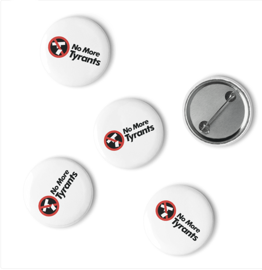 No More Tyrants is not about "stuff"; the things offered here are tools intended to foster communication and dialogue, to amplify, unify and sustain collective efforts to call out, resist and to deactivate tyrants wherever they attempt to flourish.